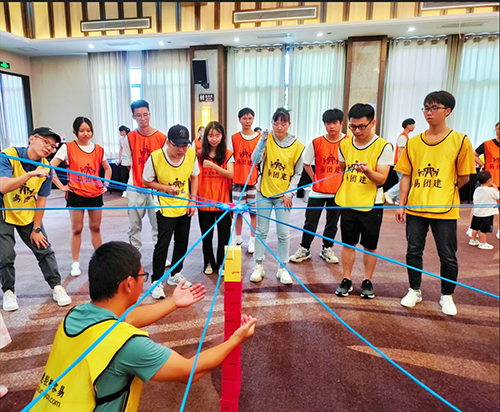 “合力建塔”也是非??简?yàn)團(tuán)隊(duì)合作的一項(xiàng)活動(dòng),需要每位隊(duì)員在不用手觸碰,只靠牽引繩的情況下搭起高塔,幾根長長的繩索就是大家傳遞力量的紐帶。這個(gè)項(xiàng)目需要大家發(fā)揮合力,快速而又沉著地完成任務(wù),是團(tuán)隊(duì)協(xié)作能力的最好詮釋?;顒?dòng)中隊(duì)員們圍圈而動(dòng)、聚焦中央,個(gè)個(gè)屏息凝神,緊張到手心出汗,舉力、拉滿、移位、對(duì)接、下放……每一個(gè)動(dòng)作大家都全神貫注、絲絲扣力,不敢有一絲怠慢。通過這個(gè)活動(dòng),參賽的團(tuán)隊(duì)收獲了建塔的喜悅,更拉近了同事的距離,懂得了通力合作的意義。
